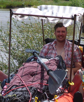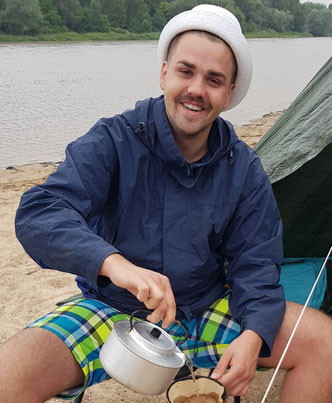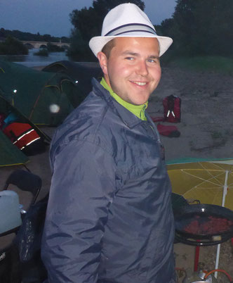 Unser Chefkoch versorgt uns von früh bis spät mit Köstlichkeiten in allen Facetten. Angefangen bei leckerem Rührei, über kleinere Mittagssnacks bis hin zum deftigen Loire-Burger ist alles dabei. Leider ist er durch seine Arbeit beim Kochen so ausgelastet, dass er zumeist keine Paddelschläge machen kann (eigene Aussage), sondern von den restlichen Brüdern über die Loire geschleppt werden muss. Nichtsdestotrotz sorgt er dafür, dass die meisten Brüder zumeist mit mehr Gewicht als vor der Tour nach Hause zurückkehren.