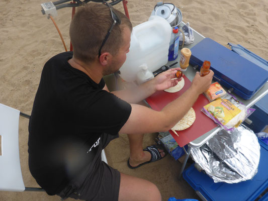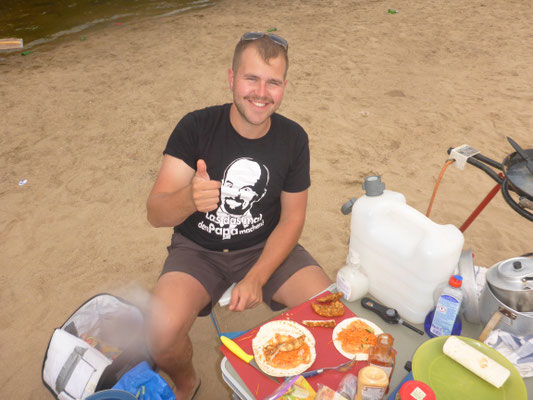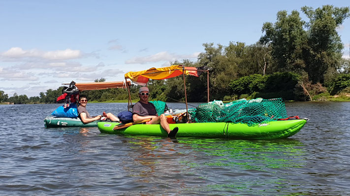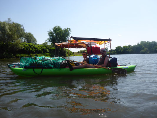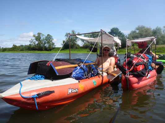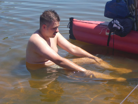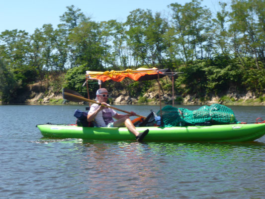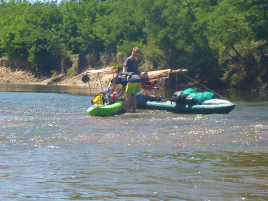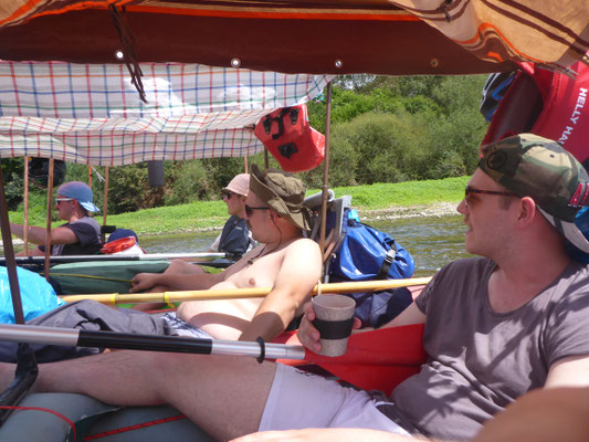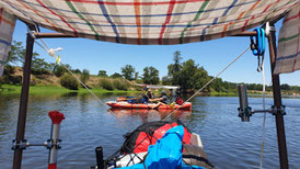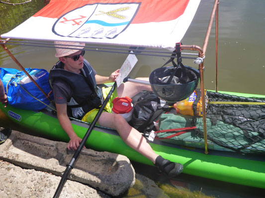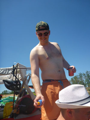 gebastelt, den wir natürlich auf der Tour getestet haben, dazu später mehr ;). Des Weiteren ist unser Sportler Matthias mit seiner neuen Errungenschaft seinem Boot "Tatjana" zur Tour