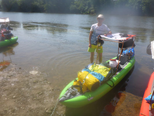 Frankreichs vorzustoßen und einige Flusskilometer zu machen. Unser neuer Paddelbruder Leon freute sich bereits während der Anfahrt auf die erste Wassererfahrung und ließ sich vor