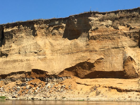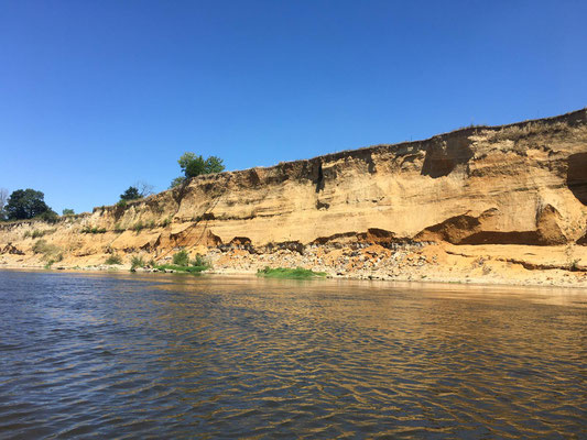 Pünktlich vor dem französischen Nationalfeiertag am 14.07. war das Ziel möglichst in die Nähe einer Stadt zu kommen, um eventuell an stattfindenden Festlichkeiten am nächsten Tag oder gleichen Abend teilzunehmen. Somit ging es direkt früh morgens hochmotiviert los. Bei entspannter Stimmung und dem ersten Tag ohne großartigen Gegenwind standen die Zeichen gut für einen entspannten Tag auf dem Wasser. Etappe 5 bot uns auch vom Panorama eine willkommene Abwechslung. Waren die Ufer bisher immer sehr begrünt und flach, wurde es mit zunehmenden Flusskilometern immer sandiger und zum Teil auch steiler. So fuhren wir an vielen Sandkalkfelsen vorbei, wo wir Schwalben beim Nisten zusehen oder abenteuerlichen Stromkonstruktionen bewundern konnten, die über die Loire reichten. Ansonsten verlief der Vormittag eher ruhig. Nach einem kleinen Mittagssnack und weiteren Flusskilometern am frühe Nachmittag erreichten wir am Nachmittag eine traumhafte Sandbank in der Nähe des kleinen Örtchens Le Grand Chemin. Hier angekommen, schlugen wir unser Nachtlager auf und nutzten den Nachmittag noch einmal zum Erkunden des Ortes und zum Einkaufen. Da wir entschieden hatten, am nächsten Tag eine Paddelpause einzulegen und einen Badetag zu machen, mussten noch einmal die Vorräte für die nächsten Tage aufgefüllt werden. Hierbei übertrieben es die einkaufenden Brüder dermaßen, dass kurzerhand ein Gefährt für den Transport gesucht werden musste. Der Filialleiter des Supermarktes war so nett uns wieder zu den Booten zu fahren und unsere Einkäufe zu transportieren. Man muss an dieser Stelle noch einmal erwähnen, dass keiner der Brüder französisch spricht. Der Abend wurde bei einem gemeinsamen Grillen mit einem leckeren Wein genossen, wobei uns unser Bruder Leon mit lustigen kleinen Spielchen die Zeit vertrieb. Da Matthias und Bratzo bisher noch keinen Angelerfolg hatten, warfen Sie in letzter Verzweiflung die Angel einfach über Nacht rein, um einen Angelerfolg zu erzwingen. Müde und glücklich gingen alle zu Bett.
